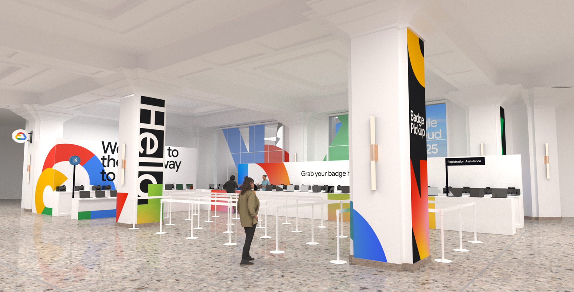 Outstanding branding and signage: Google's branding was, as expected, visually stunning and consistent throughout, including: