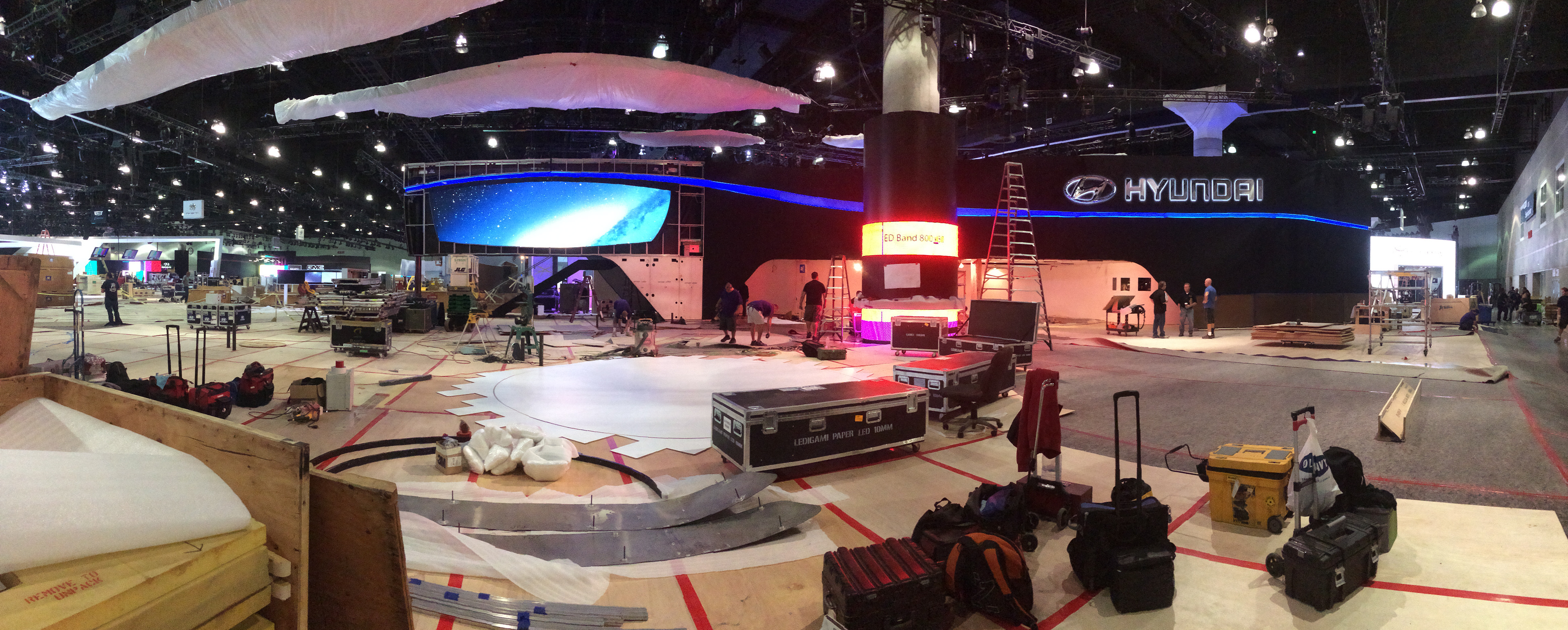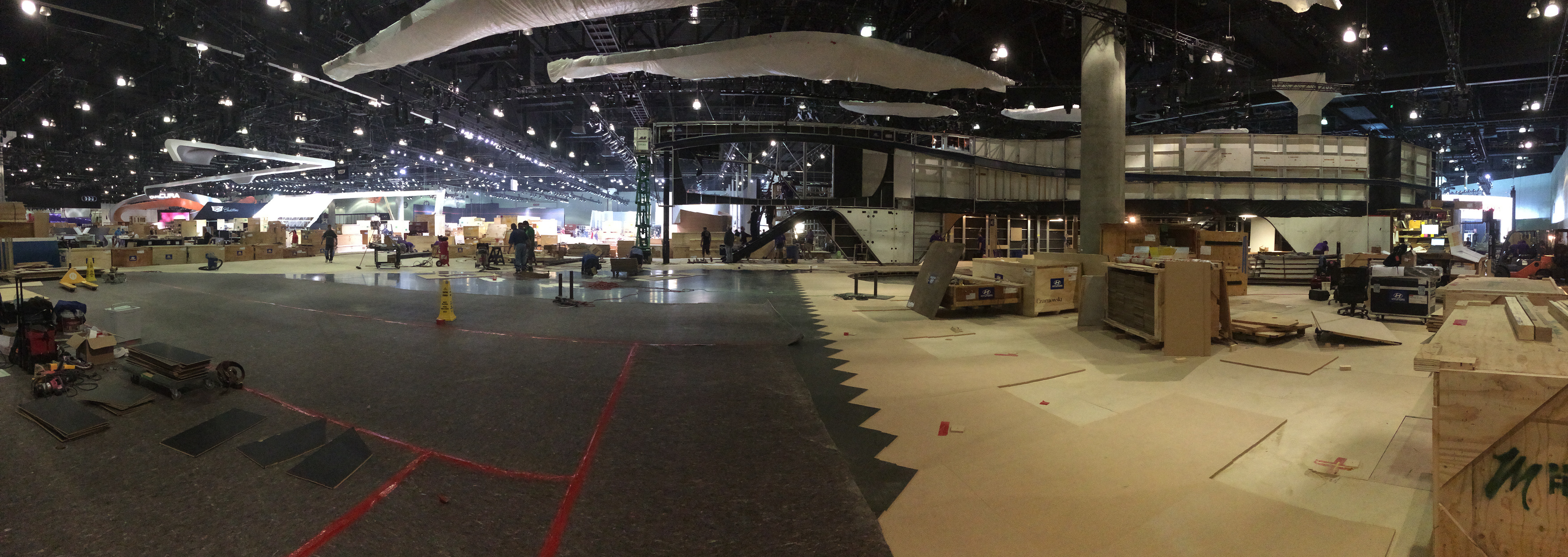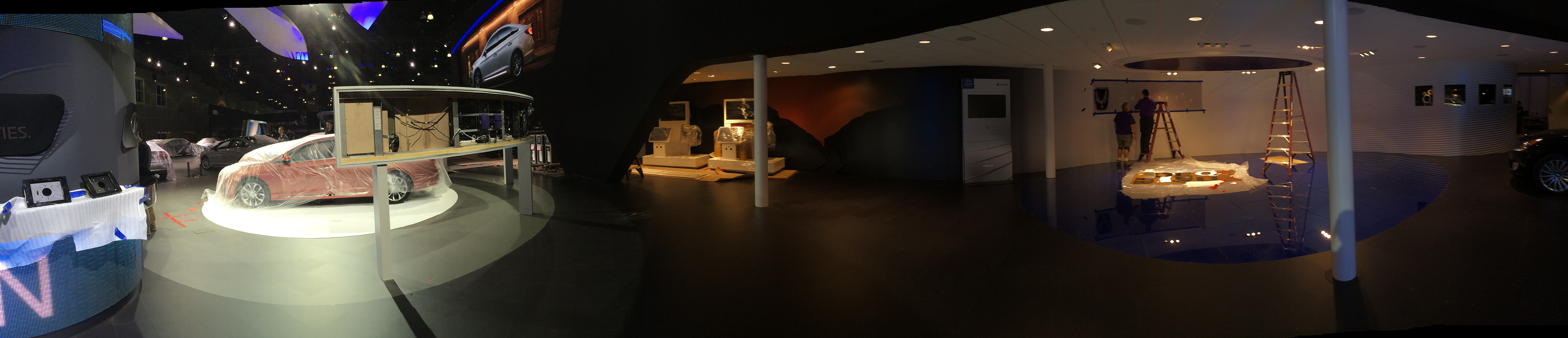 Hyundai Los Angeles Auto Show build set up and graphics installation. Panoramic photos of the evolution of the booth. In charge of graphics production and management, labor, vendors, logistics and oversaw installation of every graphic element for the booth.